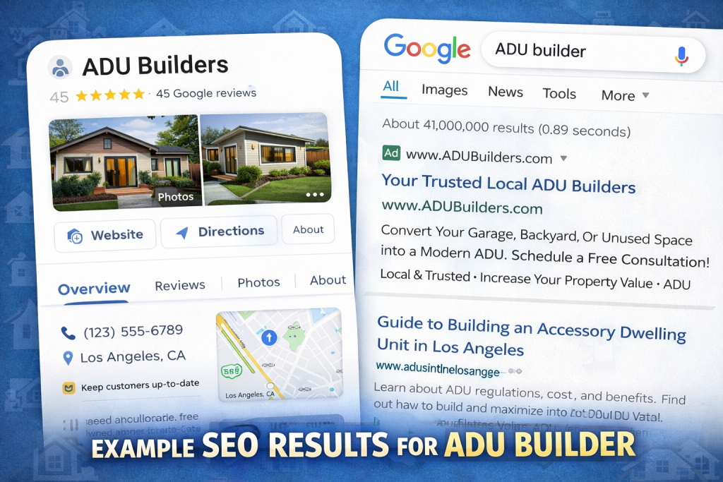 When homeowners begin researching ADUs, casitas or garage conversions, one of the first places they turn is Google. They look for cost information, builders in their area, design options and examples of completed projects. If your business does not appear in these searches, you are losing opportunities to builders who have prioritized SEO.